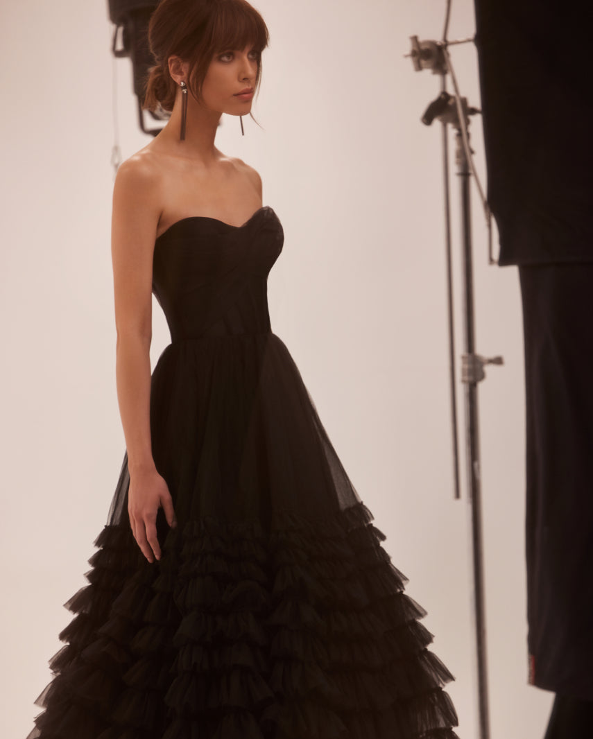 We created a vivid, shiny, and daring collection that screams ‘festive glam’. The collection is full of pieces with a variety of styles: from The Great Gatsby-inspired minis, cute doll dresses, and lush voluminous layered maxis to dramatic elegant maxis and flattering classics.